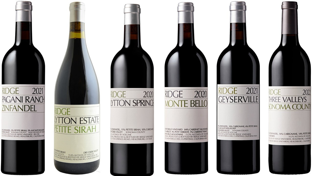 A selection of wines from the iconic Ridge Vineyards winery. One of the first California wineries to bottle its wines based on individual vineyards and regions of California, under the direction of oenologist David Raplh Bennion. This pioneering idea was subsequently adopted by more and more wineries. Their iconic wine from Estate Vineyard Montebello, which incidentally helped put California on the map of the wine world, is still the best of the state today and also part of this tasting package.
