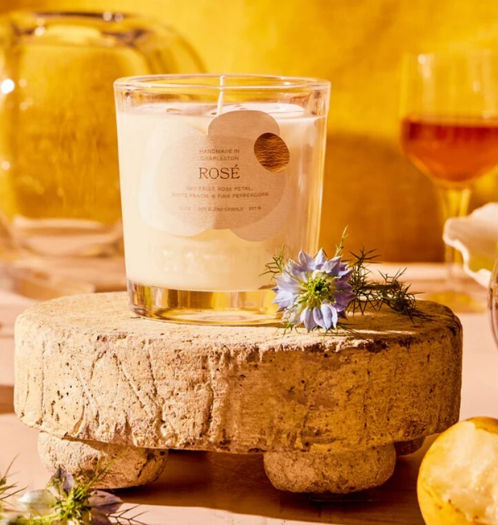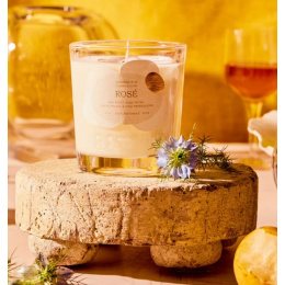 Notes of fresh red fruit and white peach blend with delicate rose petals and pink pepper. This cool and charming rosé carries a dreamy elegance wherever you are. The candle is available in 2 sizes: 283 g and 170 g and also in the luxurious Coupe glass collection.