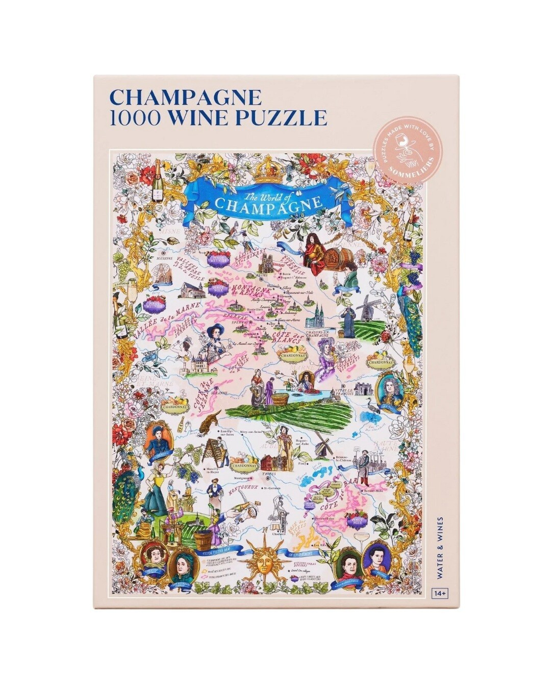 Curated in collaboration with Master of Wine and champagne specialist Essi Avellan, the puzzle highlights the main regions of Champagne, the Grand Cru villages, and the region's rich history. The puzzle box also features lots of information about champagne-making and food-pairing tips! Illustrated by hand, our design was first hand-drawn and then attentively reviewed piece by piece.